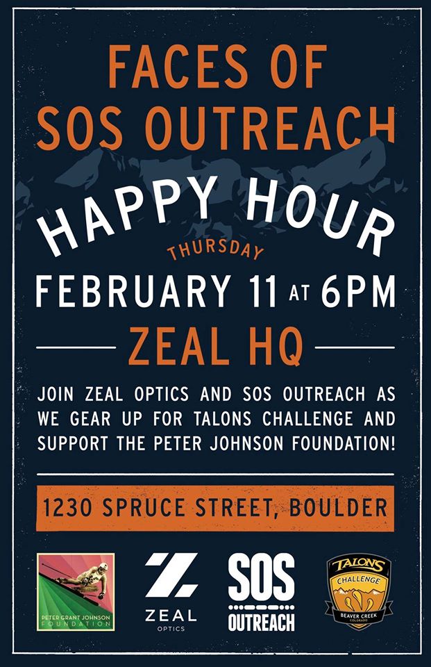 WHAT A NIGHT! We can't thank Zeal Optics for hosting our second showing of #FacesofSOS last night. The evening was complete with delicious craft beers from our friends at Upslope Brewing Company and killer raffle items from SIMS Snowboards, Osprey Packs and of course, Zeal Optics. We can't thank you all enough for spreading the love!